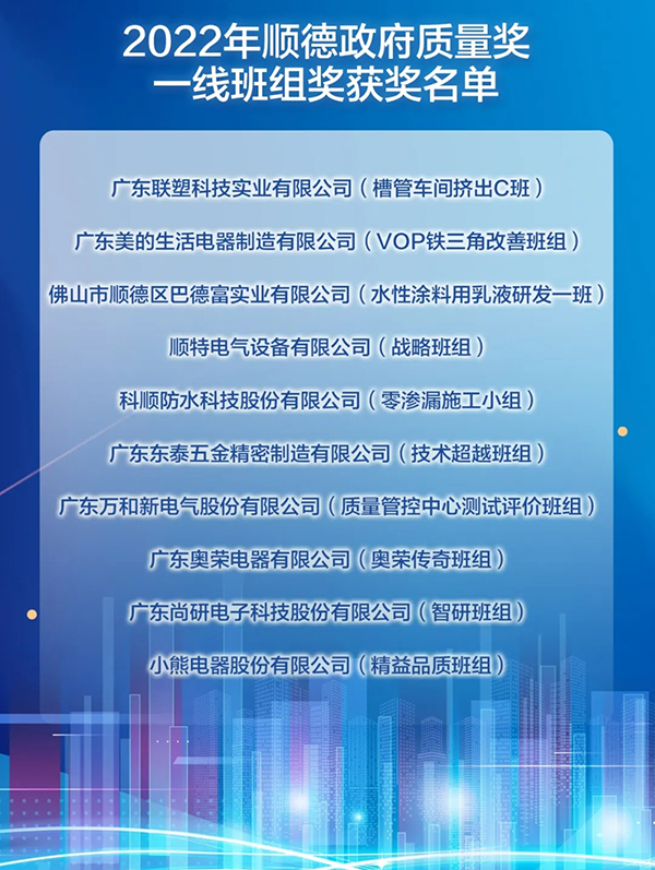 获得“2022年顺德政府质量奖一线班组奖”,是政府对南宫电气在创建先进质量管理模式、推行先进质量理念、践行科学质量管理方法等方面的高度肯定。接下来,我司将继续学习借鉴先进质量管理经验,不断强化质量意识,持续提升质量管理水平,为顺德建设质量强区、建设高质量发展先行示范区作出新的贡献。