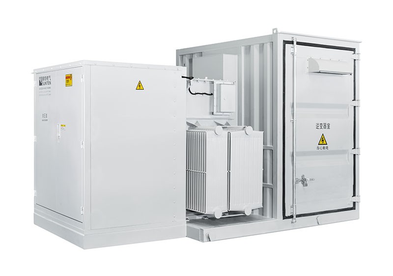 产品特点:将逆变器柜与箱变整合在一起,布局合理、空间利用率高;逆变器柜与低压柜之间在箱变内部完成电气连接,减少了现场安装连接工作量,现场仅需连接高压电缆及逆变器进线电缆即可;通过工程计算,配置散热通风窗,有效满足产品安全运行要求,环境适应性强;内设烟雾、超温、油位、电流等保护方式,全面实时了解集成箱变运行状态;与传统的箱变、土建逆变器房单独购买和安装相比,集成箱变具有体积小、安装简易、运输方便、性价比高的优点。